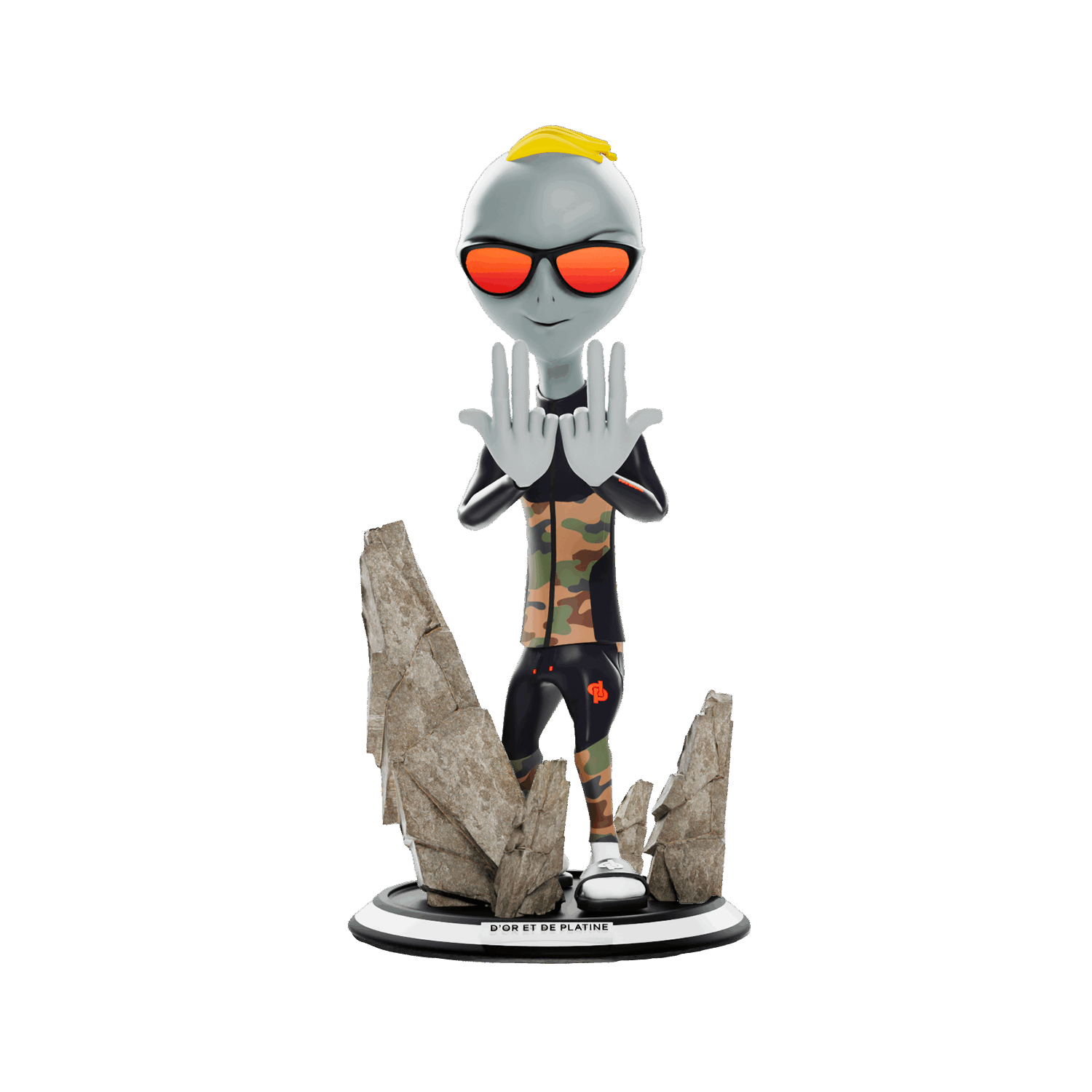 - La figurine OVNI "Camo" : composée à 100% de résine, la figurine mesure 12 cm de haut. Elle est disponible en édition limitée dans 3 coloris différents : Camo, Energy et Performance