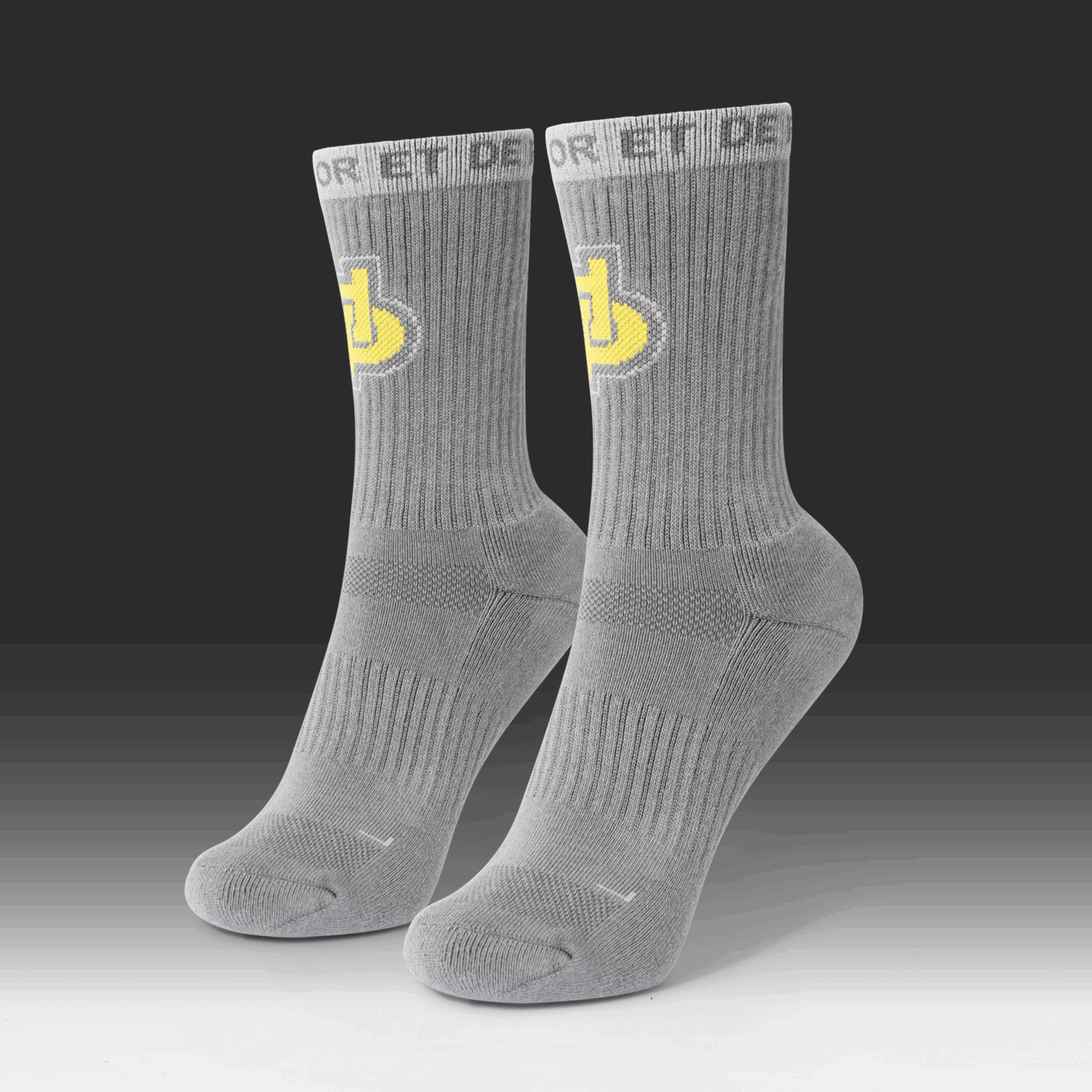 - Logo jaune fluo D&P sublimé à l’avant des chaussettes