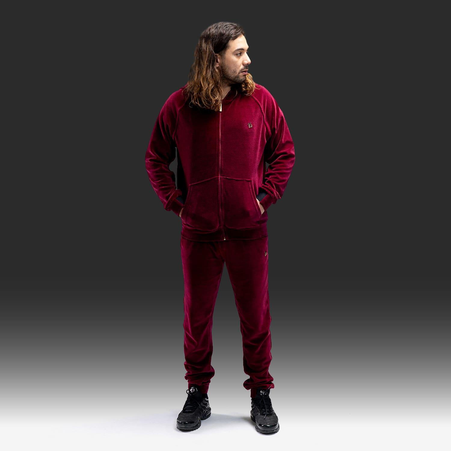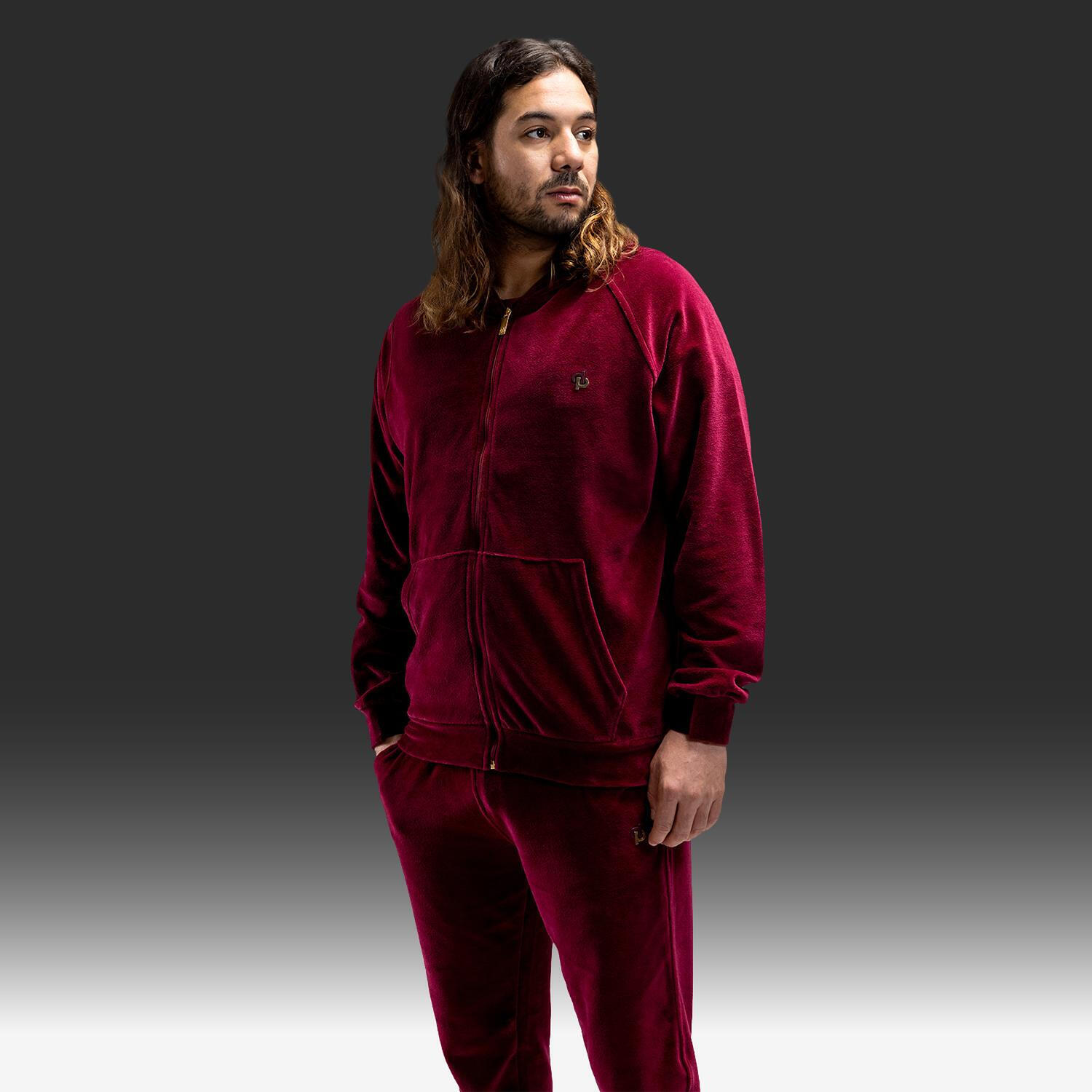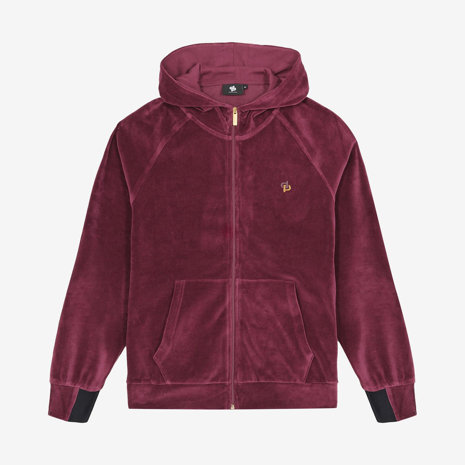 - Veste de survêtement à capuche zippée, disponible en 2 coloris : Noir profond ou Bordeaux intense