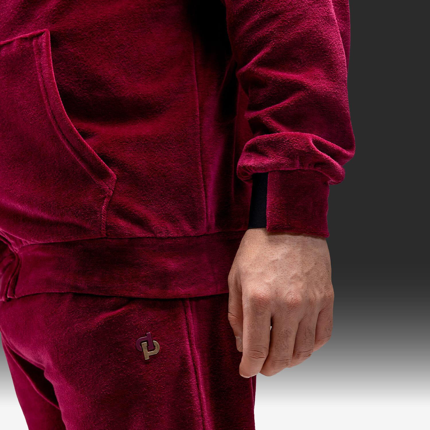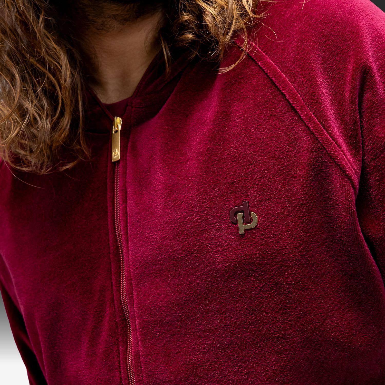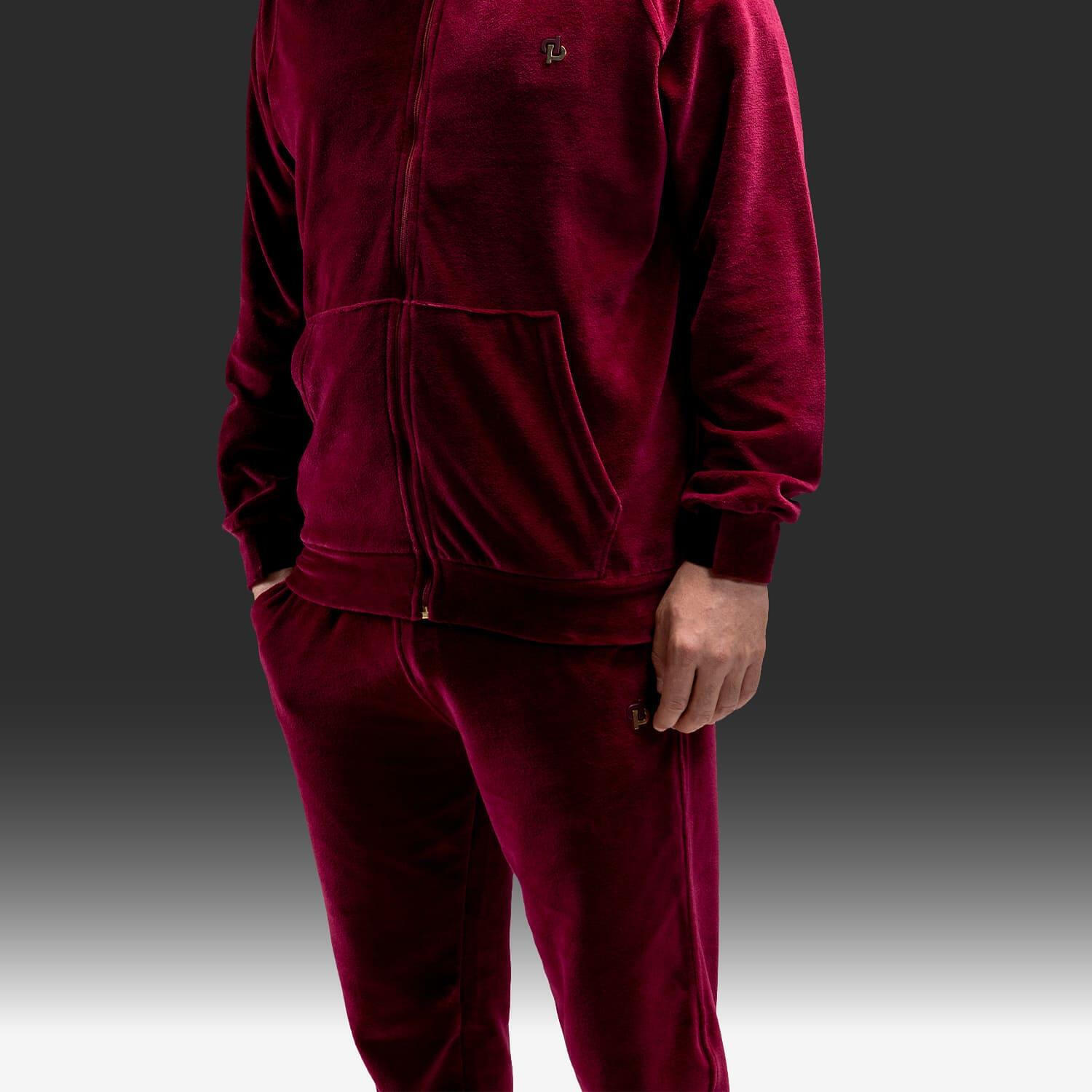 - Veste de survêtement à capuche zippée, disponible en 2 coloris : Noir profond ou Bordeaux intense